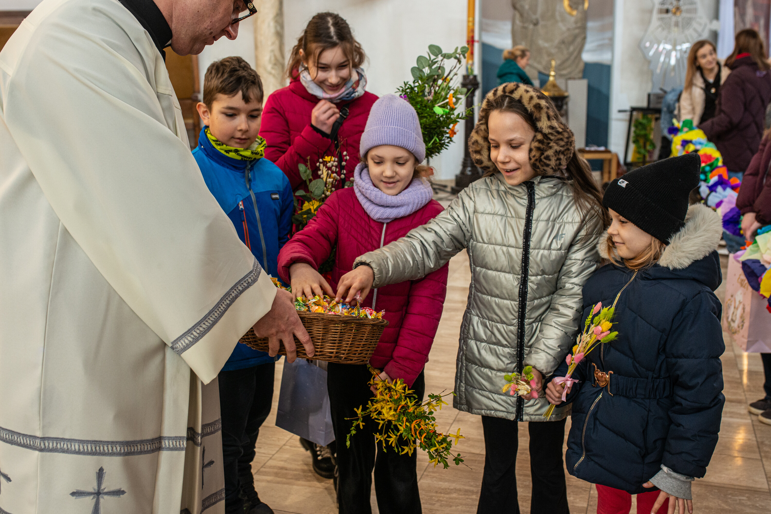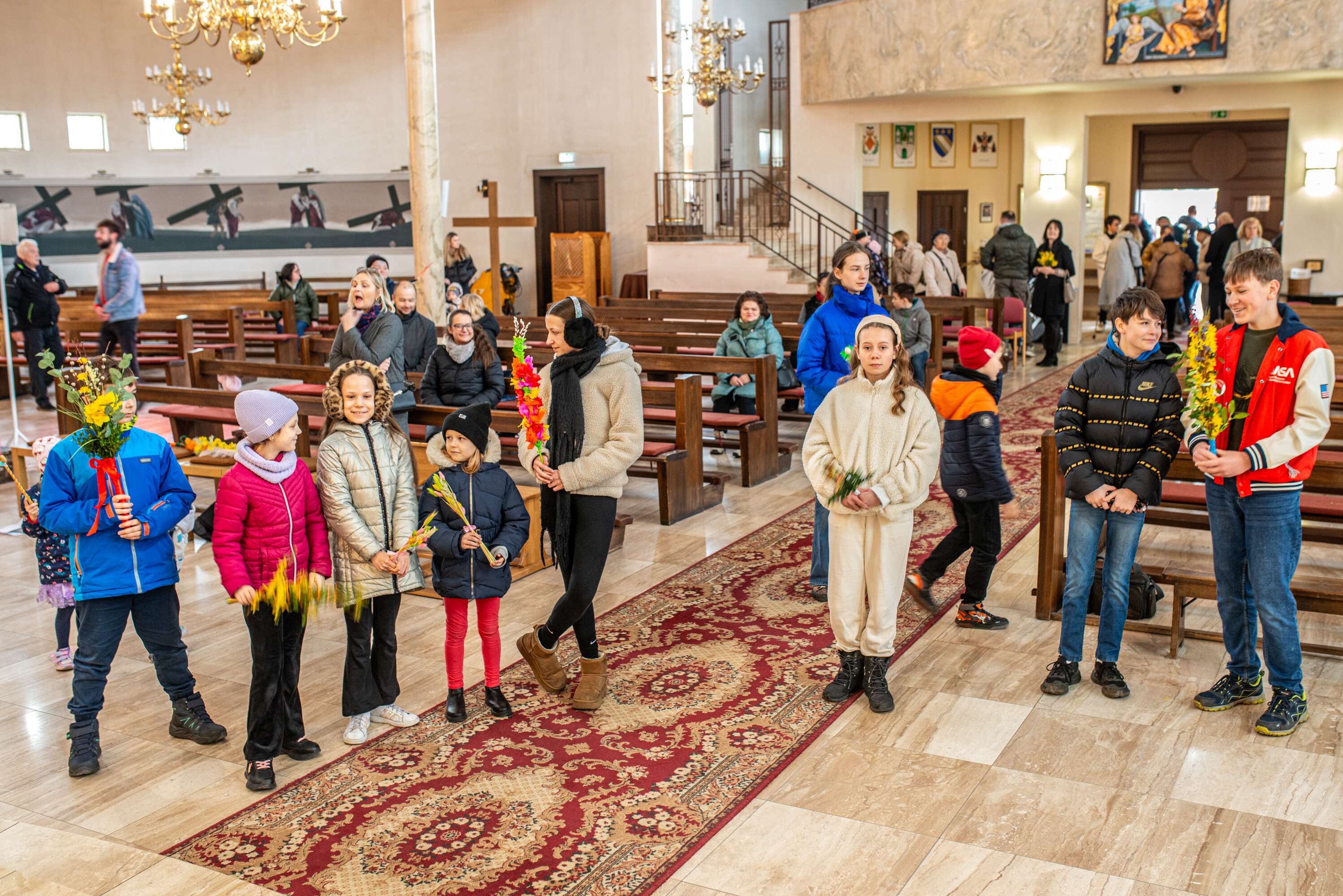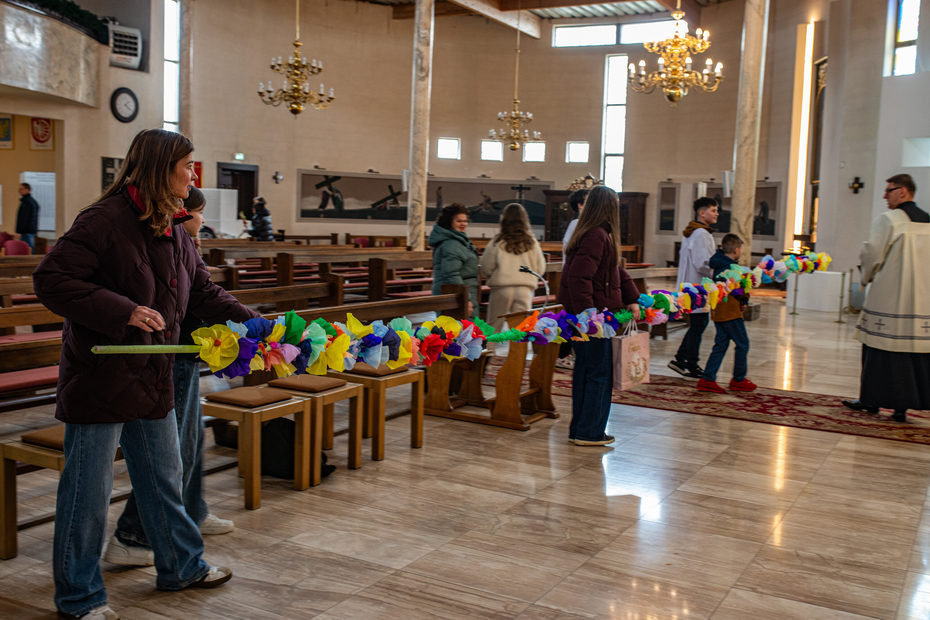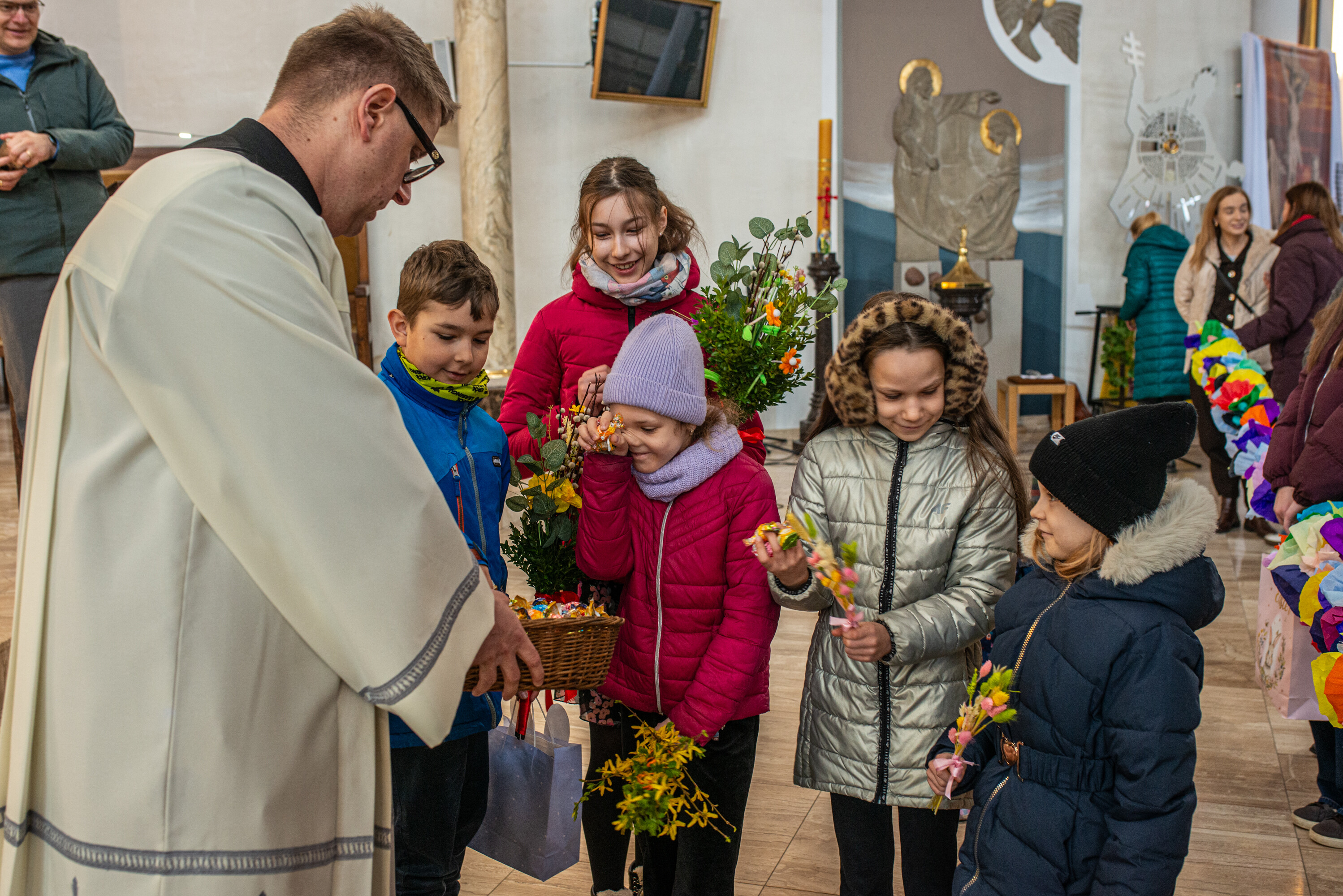 Niedziela Palmowa, rozpoczynająca Wielki Tydzień, to wyjątkowy moment w życiu Kościoła. Upamiętnia uroczysty wjazd Jezusa do Jerozolimy, kiedy tłumy witały Go gałązkami palmowymi, wołając „Hosanna!”. Również w naszej parafii ten dzień miał szczególny, podniosły charakter, a zarazem był pełen radości i zaangażowania całej wspólnoty. Uroczysta liturgia zgromadziła licznych wiernych – dzieci, młodzież i dorosłych. Procesja z palmami, która rozpoczęła Mszę Świętą, była pięknym świadectwem naszej wiary oraz przywiązania do tradycji. Kolorowe, własnoręcznie wykonane palmy wypełniły świątynię, tworząc niezwykłą, wiosenną atmosferę.